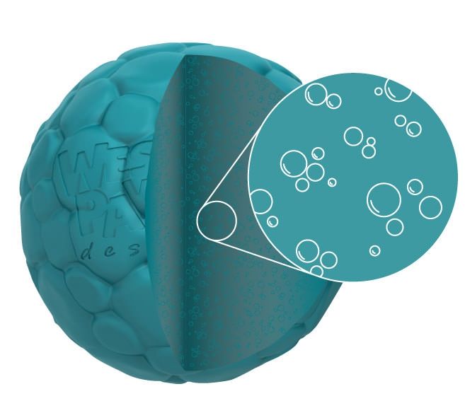 同じボールタイプの [ ゾゴフレックス ジャイヴ ] より Sサイズ(ともに直径 約 6cm)で約30グラム軽く、さらにテニスボールよりも柔らかい素材なのでパピーや小さいワンちゃんでも咥えやすく持ち運びも楽々。