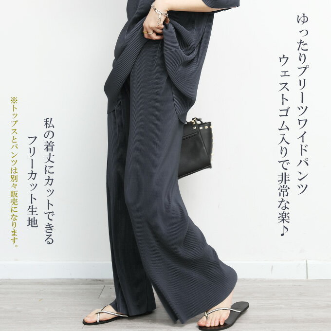 [関連ワード]ワイドパンツ トップス レディース セットアップ可 プリーツ リブ フレア パンツ ロング丈 カットソー Tシャツ 半袖 ルームウェア ゆったり オシャレ 無地 春夏 【 プリーツワイドパンツ&トップス 】【春 新作】【2021年2月新作】